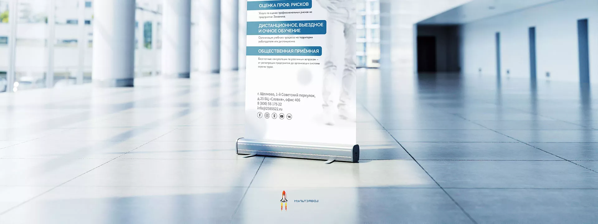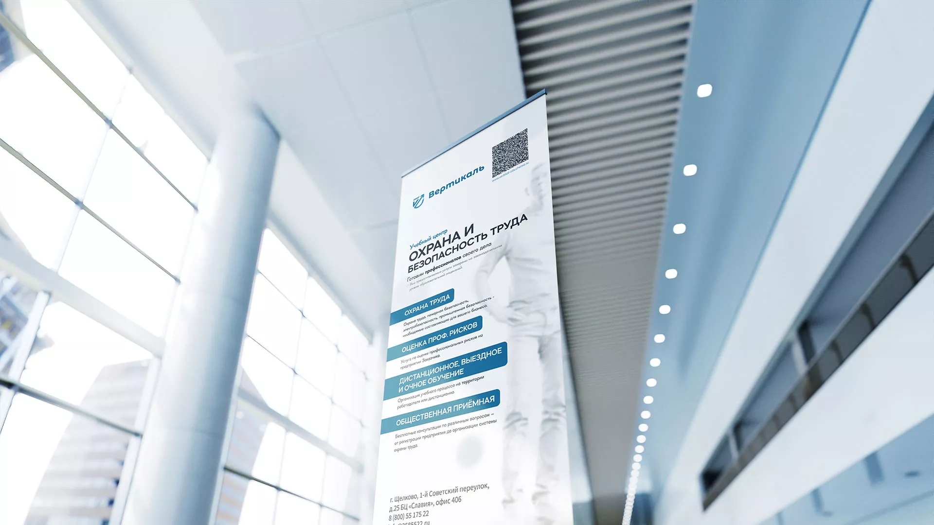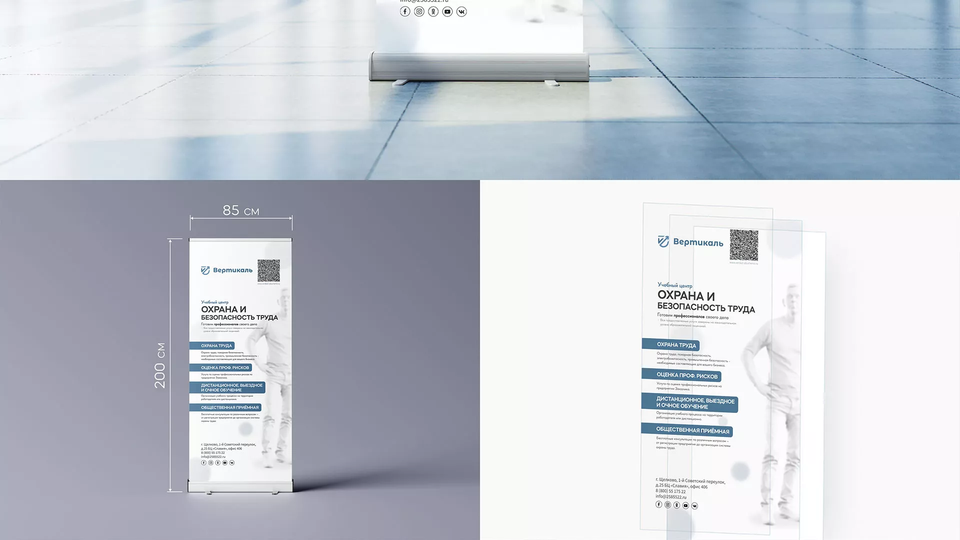 После разработки фирменного стиля и создания сайта, мы приступили к разработке дизайн-макета ролл-ап стенда в Усть-Куте для учебного центра «Вертикаль».